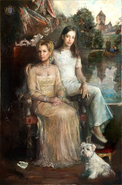 S.A.R. La Granduchessa di Lussemburgo Maria Teresa con sua figlia 2003 - olio su tela 120x180 cm